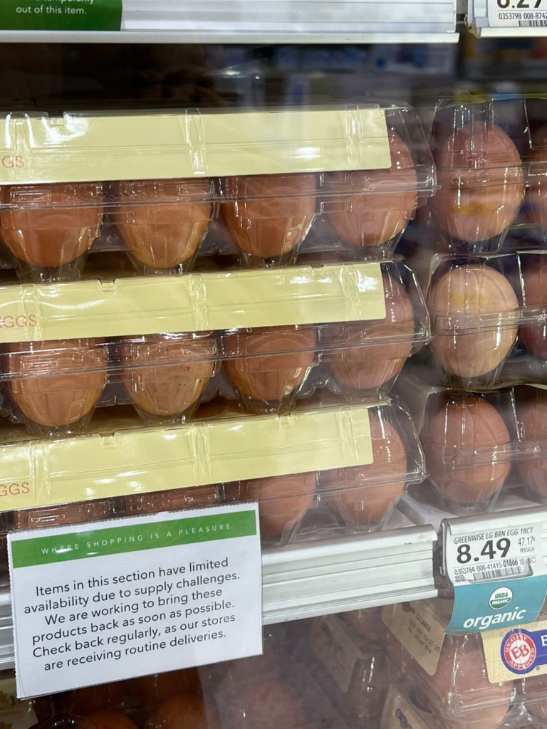 A falta de ovos já é sentida nos supermercados americanos. Grandes redes de varejo têm sido obrigadas a limitar a quantidade de ovos que cada consumidor pode comprar. Além da escassez, os preços do produto dispararam, impactando diretamente o bolso dos consumidores.