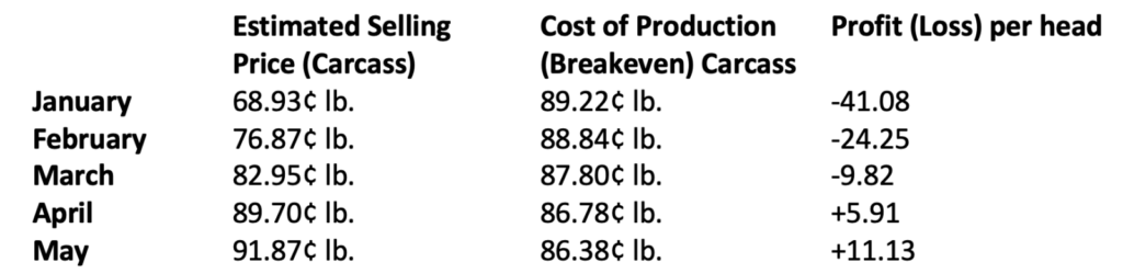 No acumulado do ano, o parto até o final é negativo. Atualmente, os futuros do porco magro de outubro a junho estão abaixo do ponto de equilíbrio de 86,38 centavos de libra. Não é exatamente uma perspectiva positiva. Ainda esperamos números mais baixos de suínos resultantes da liquidação de porcas e de novas quebras de PRRS. O aumento no preço do porco na China levará a mais importações de carne suína para lá. Menos suínos e mais demanda global puxarão os preços dos suínos para cima. Não é uma solução de longo prazo que precisamos para resolver nossos problemas de sabor da carne suína, o que nos leva a continuar a ter os preços da carne suína abaixo dos preços da carne bovina, em detrimento da nossa indústria.