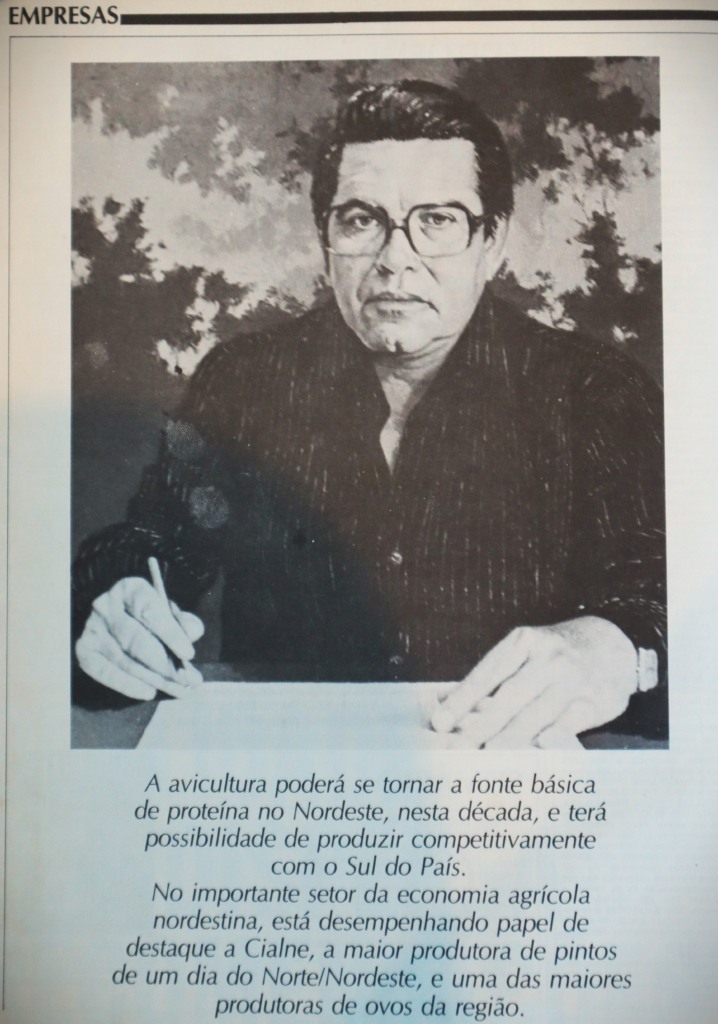 A força do Nordeste e as ambições da empresa – considerada granja modelo – eram retratadas por meio da fala de seu diretor-presidente, Francisco de Araújo Carneiro. À época, o objetivo da Cialne com as novas instalações na região era aumentar a produção em 300 mil ovos por dia.