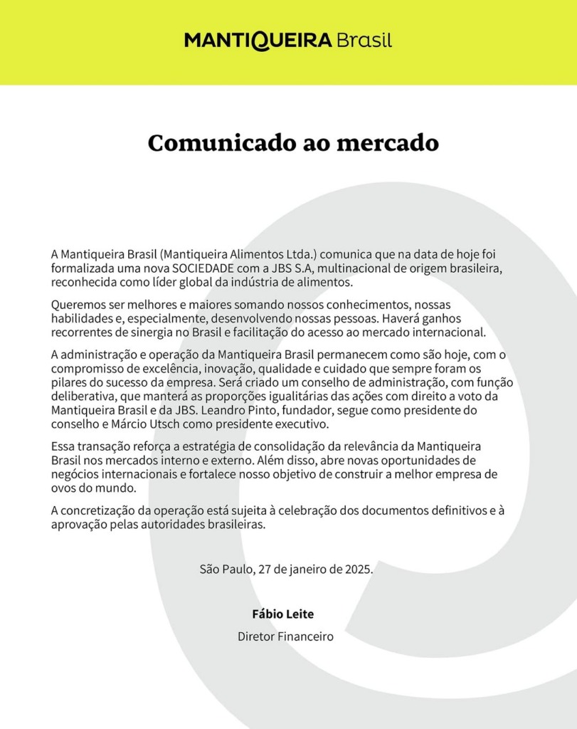 A Mantiqueira foi fundada por Leandro Pinto na cidade de Itanhadu, em Minas Gerais. É reconhecida como a maior produtora de ovos comerciais do Brasil, contando com um plantel impressionante de 17,5 milhões de galinhas poedeiras e um faturamento estimado em R$ 2 bilhões. A transação é notável não apenas pelo valor envolvido, mas também pelo modelo incomum adotado pela JBS. A companhia dos irmãos Batista irá compartilhar o controle da Mantiqueira com seu fundador, que continuará a liderar as operações ao lado do CEO Marcio Utsch.