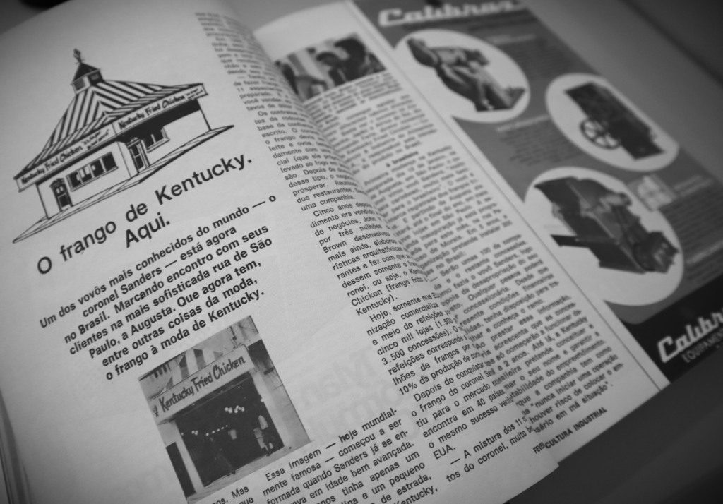 “Depois de mais de 20 anos, a imagem do Coronel Sanders, mundialmente famosa, finalmente chegou ao Brasil com a inauguração da primeira loja da Kentucky Fried Chicken (KFC) em São Paulo.